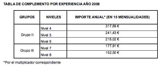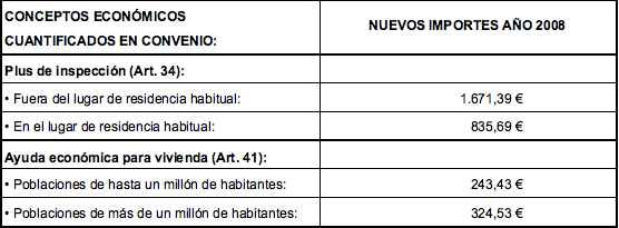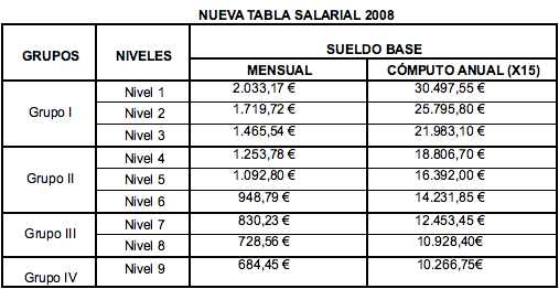 Una vez publicado el dato oficial de IPC por el INE del año 2008, situado en el 1,4%, se ha efectuado la revisión sobre la tabla salarial vigente a 31 de diciembre de 2007, resultando así la nueva tabla salarial para el 2008.