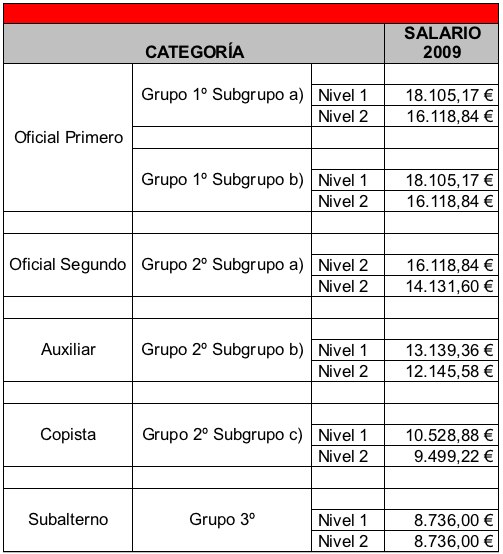 Dos días antes de la reunión nos remitieron una la tabla que, confirman este planteamiento y se basa en el estudio de las tablas salariales de los diversos convenios existentes. En aquellos que no tiene actualizaciones recientes se han actualizado con el IPC como referencia. Una vez obtenidos todos los salarios, hacen constar el mínimo de cada categoría.