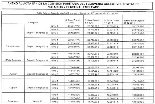 Actualización tablas salariales Convenio de Notarías